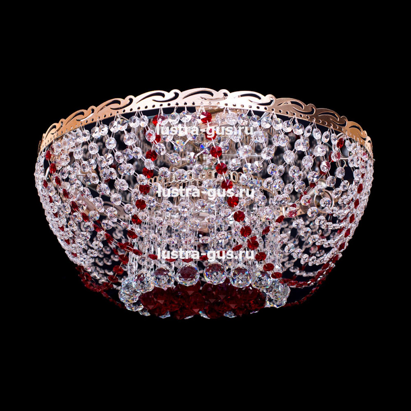 Потолочная люстра Анжелика 6 ламп + низ красного цвета от российского производителя светильников Гусь-Хрустальный идеально подойдет для освещения зала, гостиной, спальни. Люстра выполнена в классическом стиле с изящными хрустальными подвесками. Арматура светильника выполнена из металла, цоколь - E27. Цвет арматуры - золотой или серебристый, на выбор. В основании люстры расположено зеркало, которое отражает свет и усиливает освещенность комнаты.
